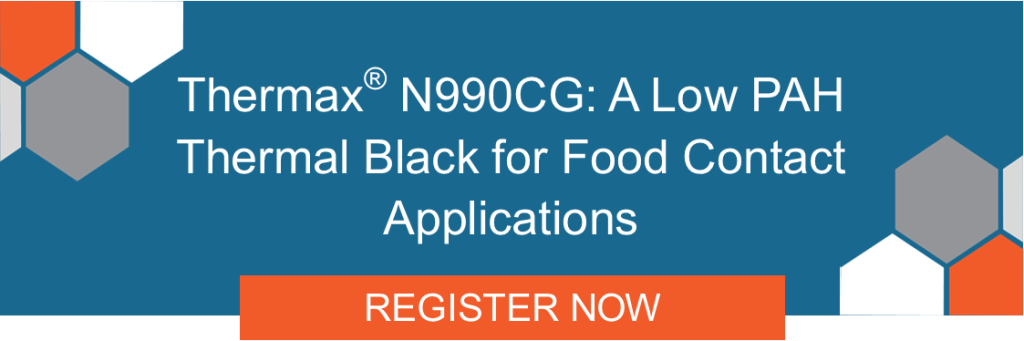 Join us on Wednesday, November 19, 2025, from 11:00 AM to 12:00 PM (ET) for a free webinar titled “Thermax® N990CG: A Low PAH Thermal Black for Food Contact Applications.” This session will introduce Thermax® N990CG, a low PAH grade of thermal carbon black designed for use in consumer goods and food contact applications.
